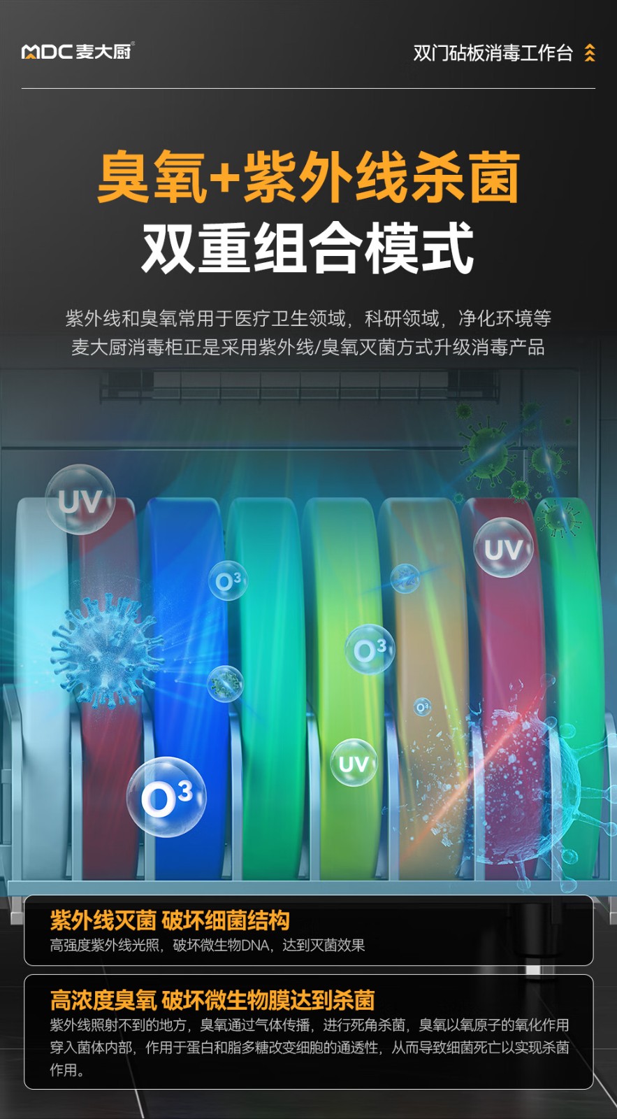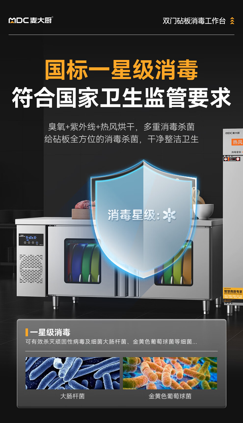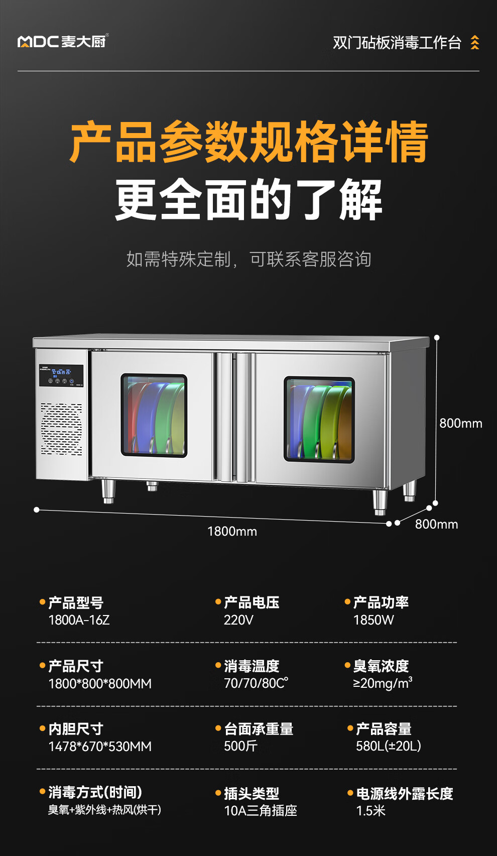 麥大廚1.8m雙門砧板組合臭氧紫外線熱風循環消毒工作台