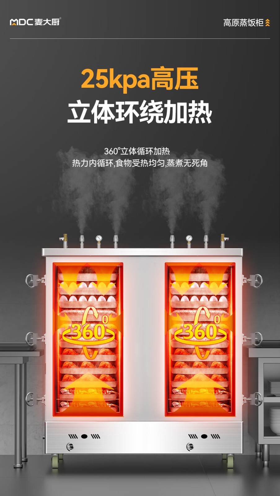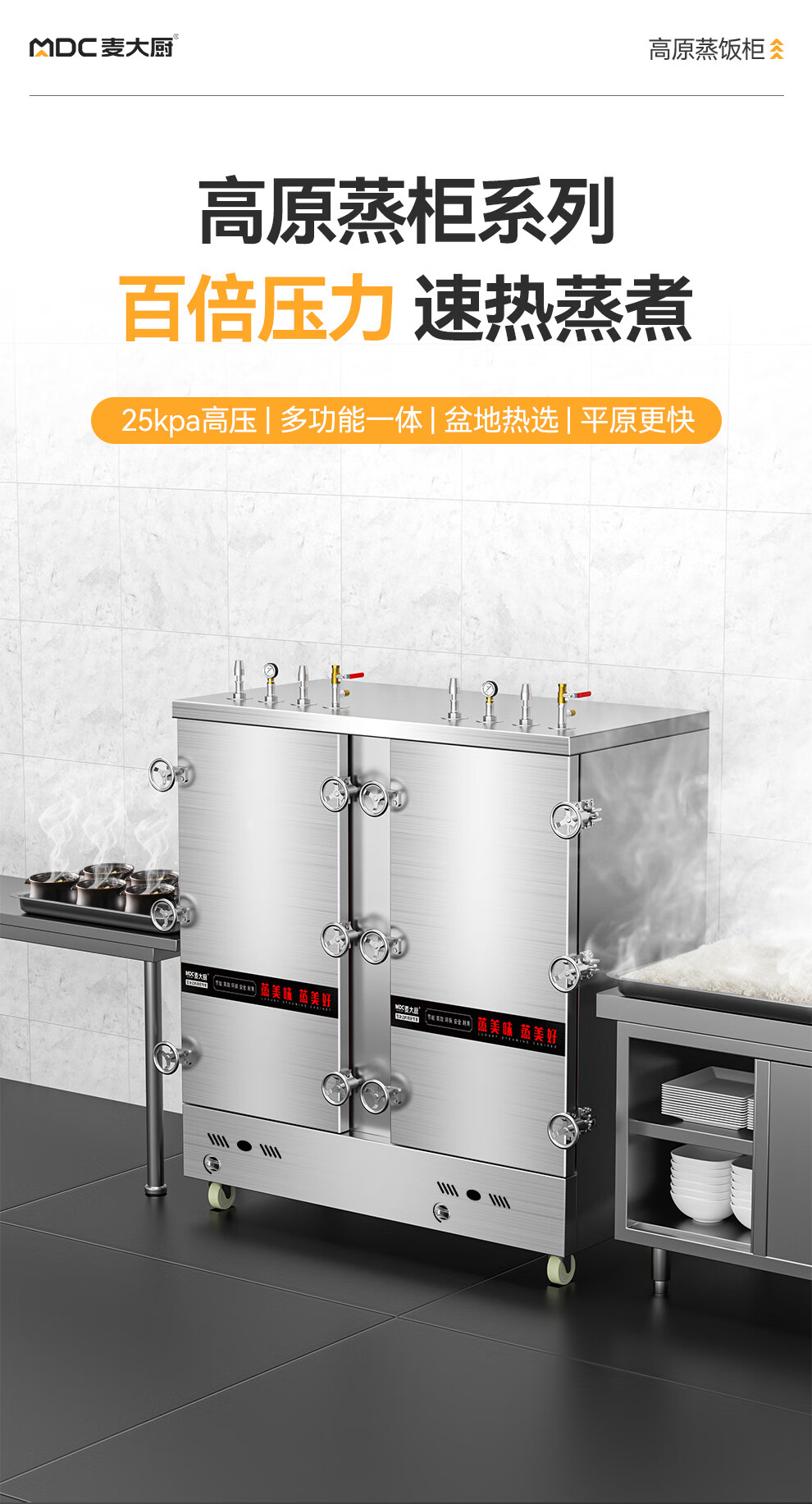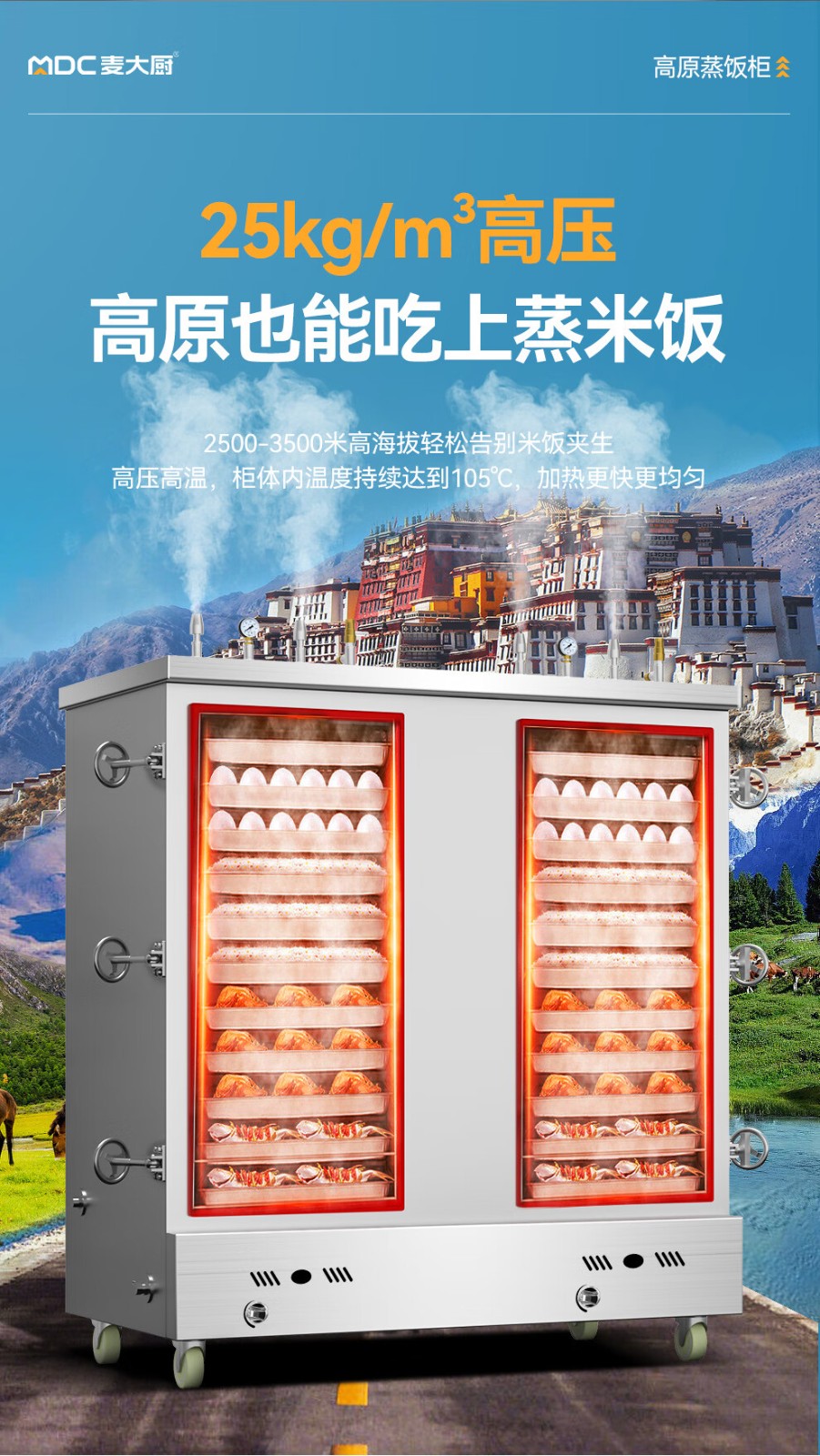 MDC商用高原蒸櫃燃氣款24盤雙門蒸飯櫃32KW